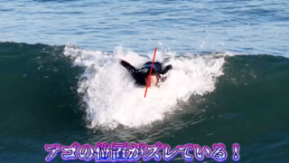 さらに、テールが安定しないことでノーズが刺さりそうな感覚が出てしまい、怖くなって動きが中途半端になることもあります。結果として、スピードが落ちて波に置いていかれやすくなります。足はボードの上に、ヒザとモモがボード上にあるのが理想です。